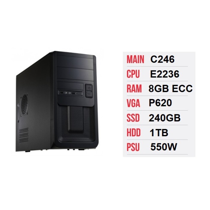 - CPU: Intel Xeon E-2236 (3.4GHz turbo up to 4.8GHz, 6 nhân, 12 luồng, 12 MB Cache, 80W) - Socket Intel LGA 1151-v2