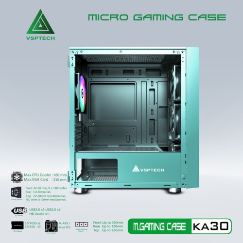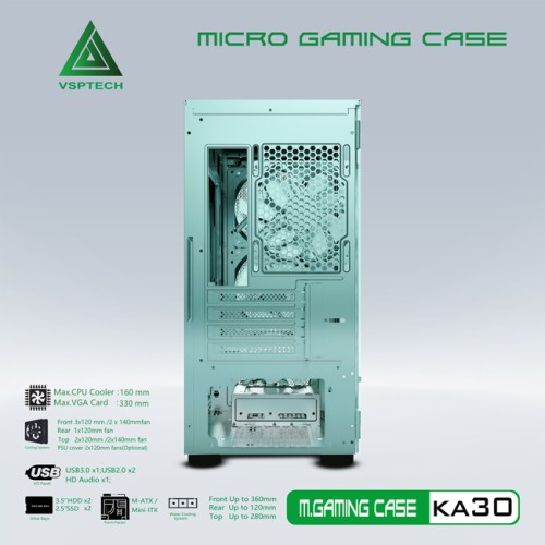 - Cooling/quạt tản nhiệt: Front: 3x120mm (Fan optional) ; Rear: 1x120mm (Fan optional) ; Top: 2x120mm (Fan optional)